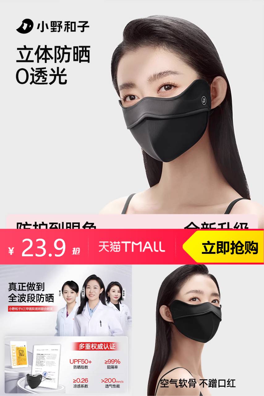 【淘礼金抵扣4.78 ,叠加金币1块 到手18.12】这款小野和子立体防晒口罩,专为女性设计,不仅具有超强的防晒效果,完美贴合脸部轮廓,无论你是跑步、骑车还是户外活动,都能有效防止紫外线伤害。