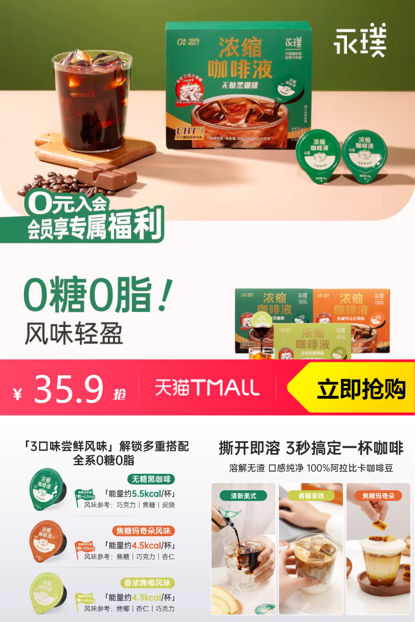 【原价79.9元-限时直降25元-19元券=35.9元,淘金币3.98元,可叠加消费券,到手27.9元】正在控糖减脂又戒不掉咖啡?这款0糖0脂的永璞黑咖液,喝起来完全没负担!拒绝植脂末和添加糖,配料表干净,纯粹是咖啡豆萃取液。健身前来一杯,提升代谢还不长胖。