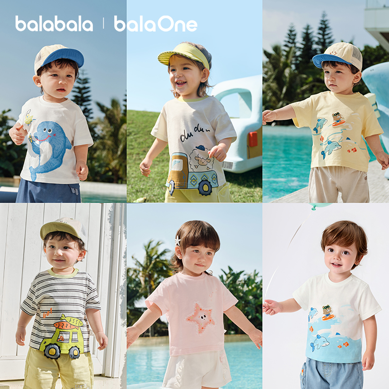 【佰补】巴拉巴拉童装宝宝短袖t恤男童女童婴儿上衣2026新款夏季可爱萌趣