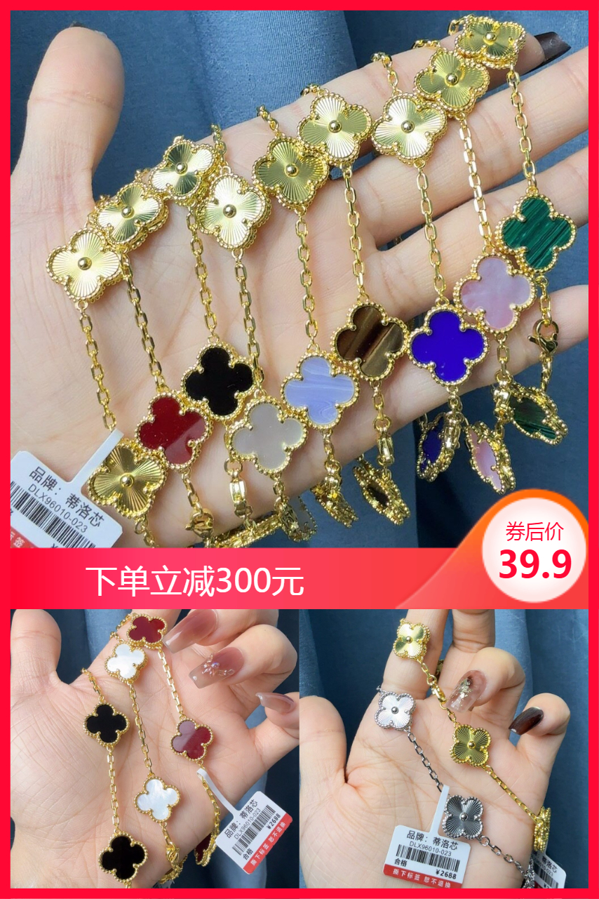 520活动促销!经典五花四叶草手链项链活动来啦!男生女生都能带买回去送爱人、送亲戚、送姐妹、送闺蜜,实物+证书+礼盒+手提袋都有!防过敏,不掉色!!网红爆款,一年四季都可戴!每款都敲美的!都超有质感,而且还不掉色!喜欢吸睛的宝子,强烈推荐!戴真的超高级的!很仙!品质保障三年内免费换新 有送三年保修卡