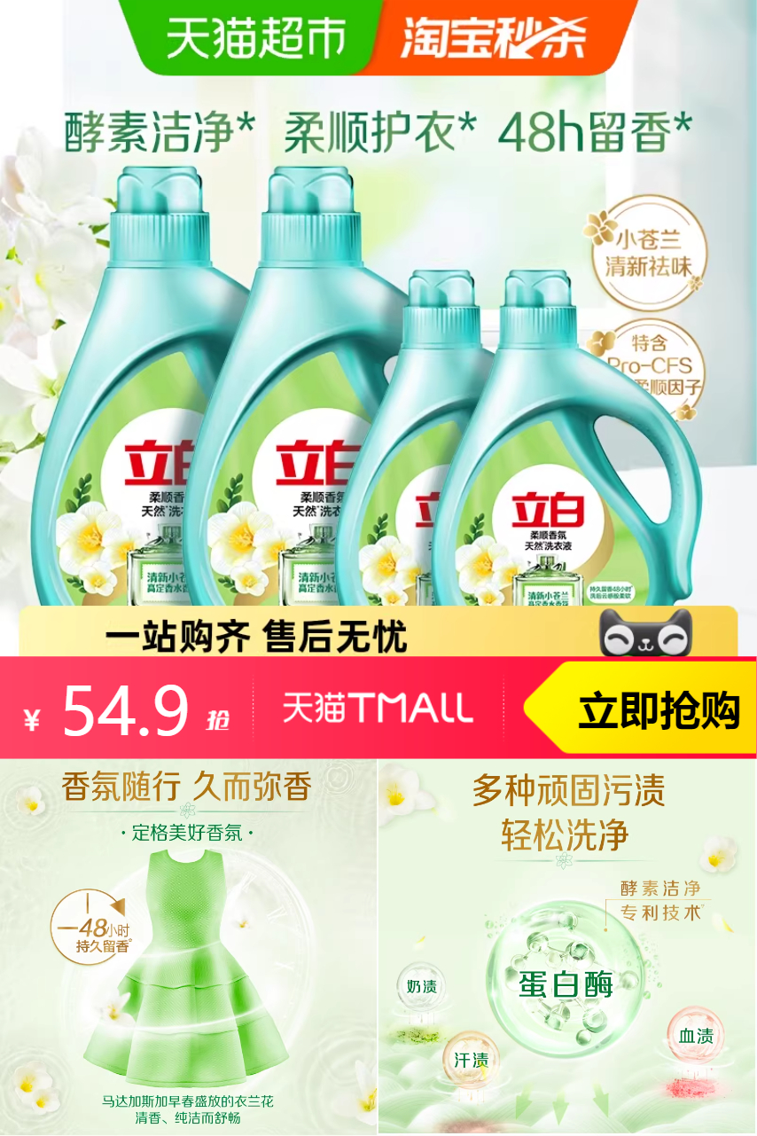 【原价99.9-秒杀直降 35-10(99-10平台购物券)-红包5块-优惠券5块-淘金币7.98-消费券4.3-88vip 2.3=29.42】立白高定清香小苍兰洗衣液6kg,柔顺留香,清新好闻!家庭装大容量,性价比超高,洗衣同时呵护衣物柔软,香气持久不散!