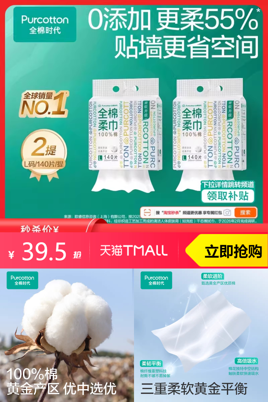 【先领3元优惠券加购物车,然后淘宝秒杀进,88vip1.98,限时补贴16.4,满减分摊4.68,到手价32.84元2提】全棉的材质更是让人安心,亲肤柔软,不会刺激皮肤。每次使用都像是在享受一次温柔的呵护。悬挂设计也超级贴心,方便晾晒和存放,让洗手间更加整洁有序!