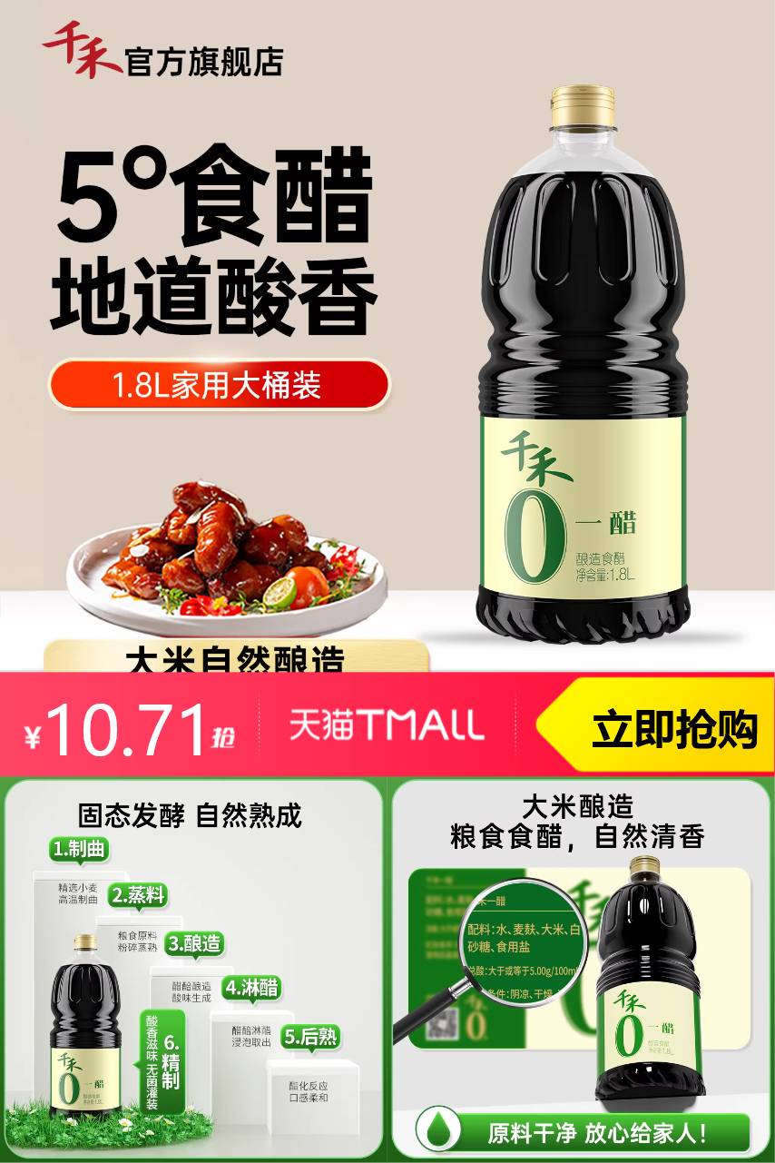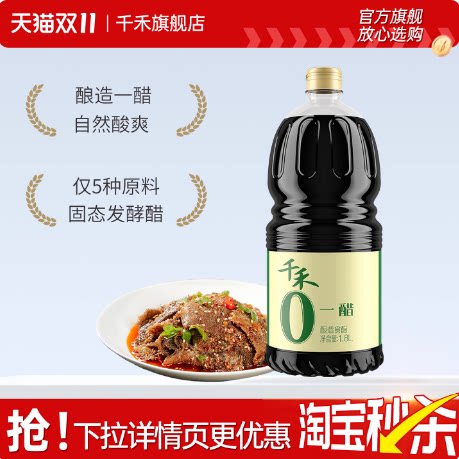 【淘金币抵扣1.20,到手价10.71】千禾零添加一醋1.8L,不加防腐凉拌点蘸调味酿造醋