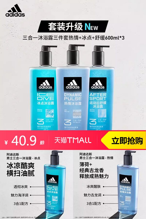 【立减7.35元,慢50元减13元,到手40元左右!超划算套装】5种选择,随心所浴,每次洗澡都酣畅淋漓!升级三合一配方,升级环保包装,经典高级男香!经典香型,耐闻不腻!