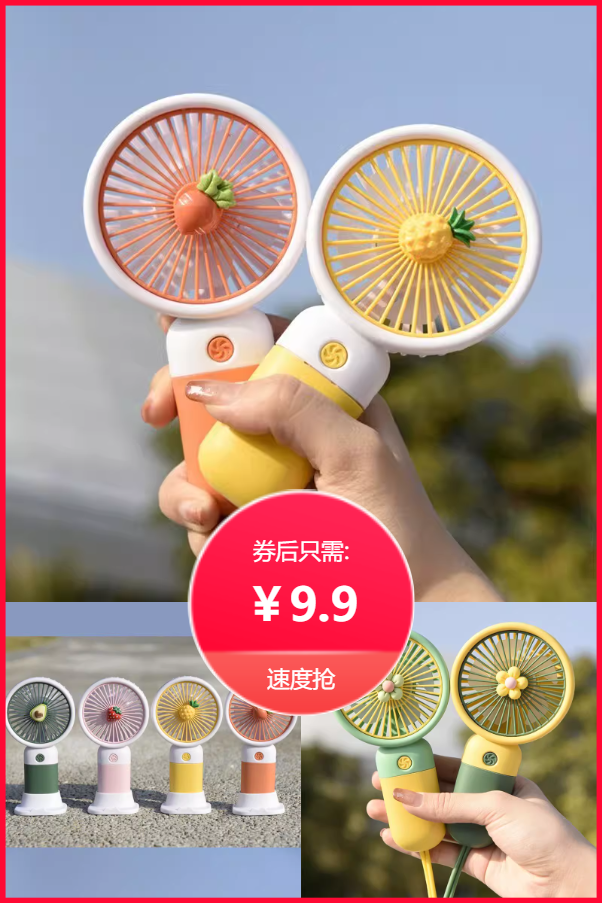 超萌水果造型手持小风扇,颜值与实力双在线!小巧便携,可手持可立放,USB多场景充电,续航在线。夏日随身清凉神器,上学、通勤、出游都适配,可爱又实用,轻松告别闷热