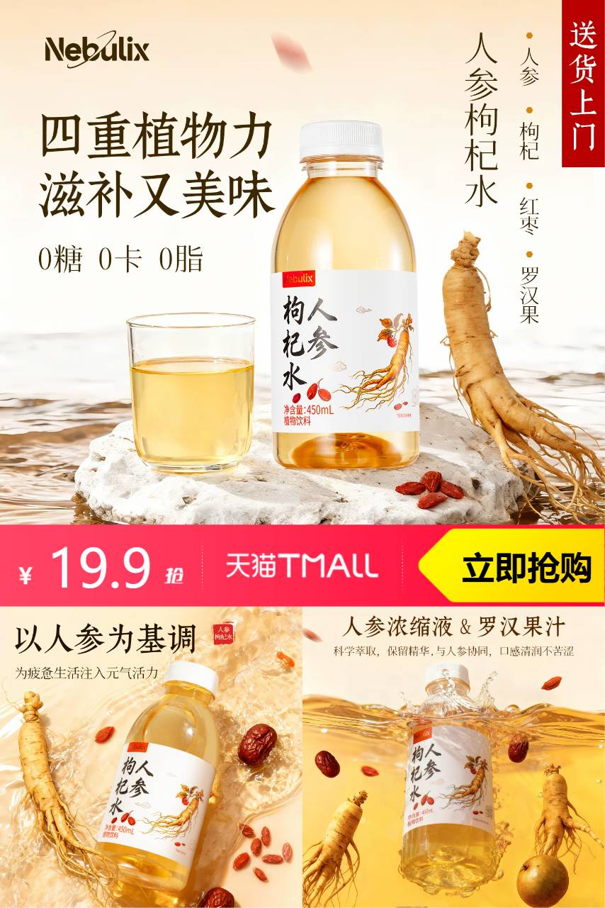 【官方赠送淘金币,有则到手更低】星珀人参红枣枸杞水450ml*8瓶,四重植物力,滋补又美味。早八通勤赶得连水都忘带,保温杯的枸杞水焖久了发苦,瓶装饮料又甜得齁嗓还怕胖,换季手脚冰、熬完夜脸黄得像挂了层滤镜,喝多少凉白开都缓不过来,真的急需一瓶“不用自己煮的元气水”啊