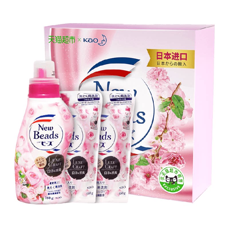 日本进口花王玫瑰花香洗衣液防静电持久留香柔顺剂去污渍组套