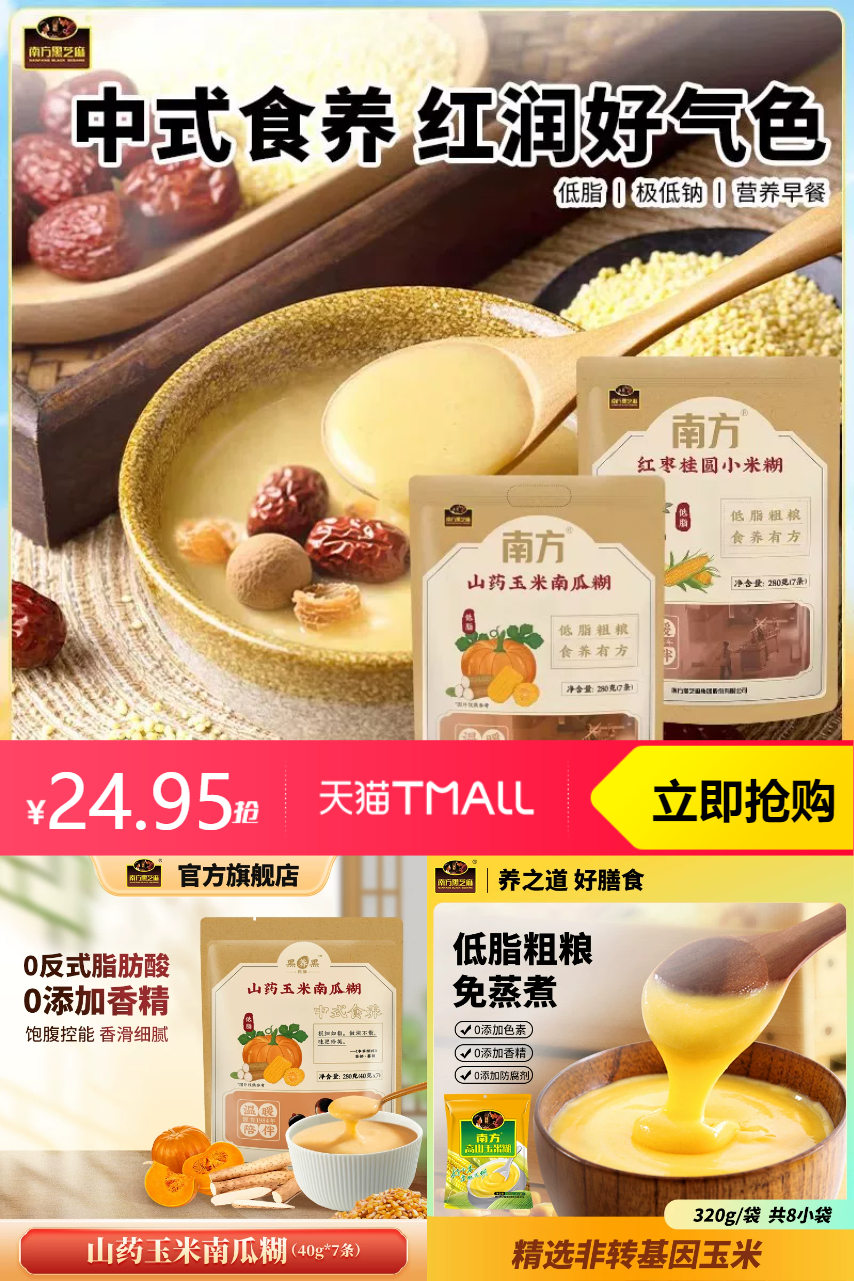 【淘金币2.95,到手价22】黑芝麻糊/玉米糊/南瓜糊都可以选。补膳食纤维,秃头宝贝必入代餐!国货老品牌!经典好味道,老少皆宜,营养健康,日期新鲜!【赠运费险】