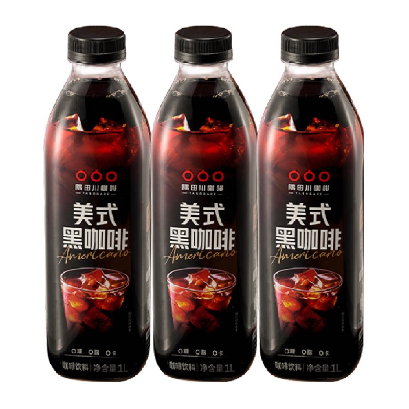 【新品】隅田川美式咖啡饮料即饮黑咖啡1L*3瓶无糖