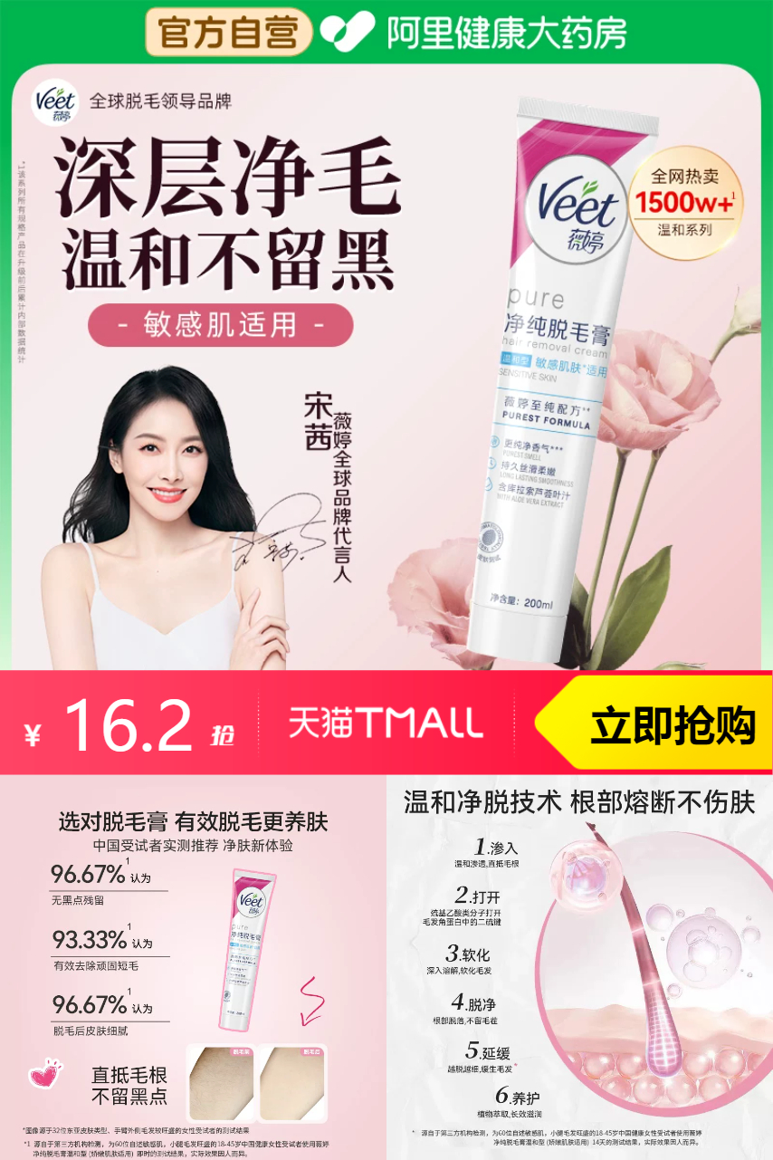 【官方补贴14,叠淘金币1.02,新客立减3.到手12.18元。可叠88消费券到手更低】关晓彤同款Veet薇婷脱毛膏来啦!温和配方,轻松脱毛,腋下不留黑点。男女适用,让你自信展现光滑肌肤。