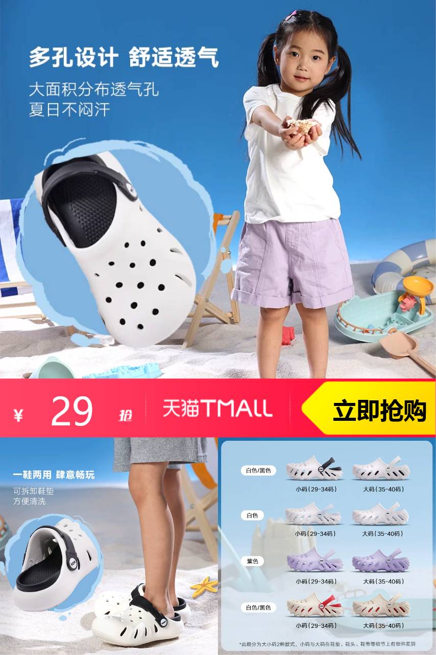 【叠加淘金币1.76元,到手27.24元】夏天遛娃刚需💦软fufu踩屎感谁懂啊! 娃疯玩一天脚脚都不闷不臭,全包防护不磕脚趾 镂空秒排水