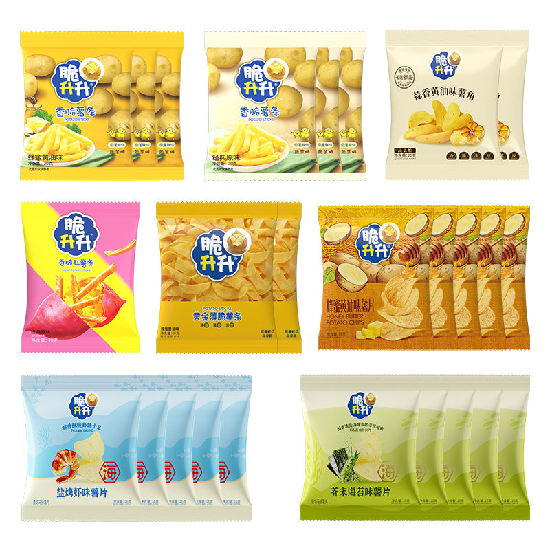 脆升升香脆薯条薯片零食26包大礼包休闲食品。