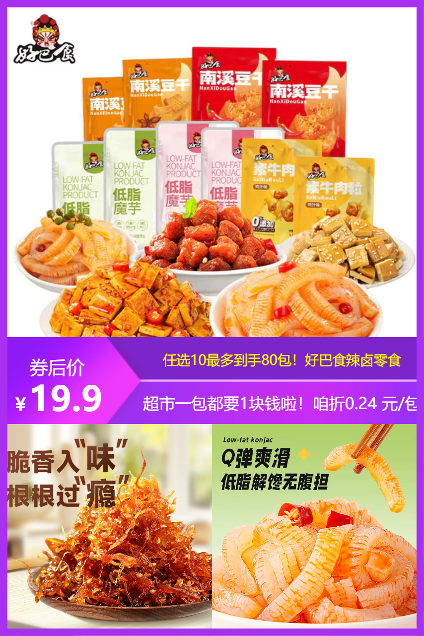 【真心便宜啊!任选10件才19.9最多到手80包!超市一包都要一块钱啦!】传承千年的非遗美食,精选南溪豆干与酱干,多种风味任你选择,麻辣鲜香,回味无穷!适合办公室小食、休闲娱乐,是您的理想小吃伴侣。