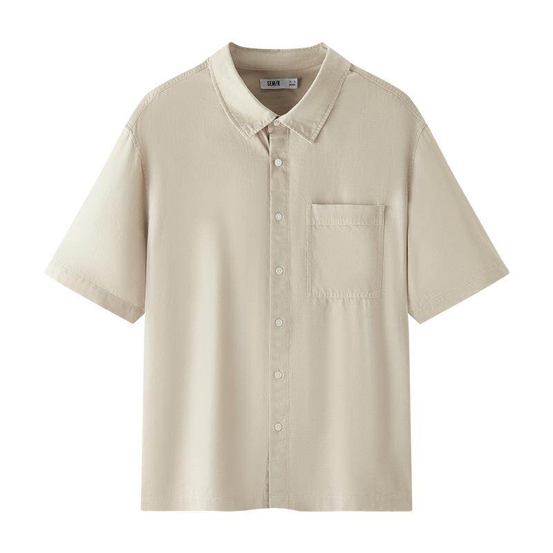 森马短袖衬衫男夏季棉麻纯色日常通勤上衣小宽松简约百搭外穿开衫