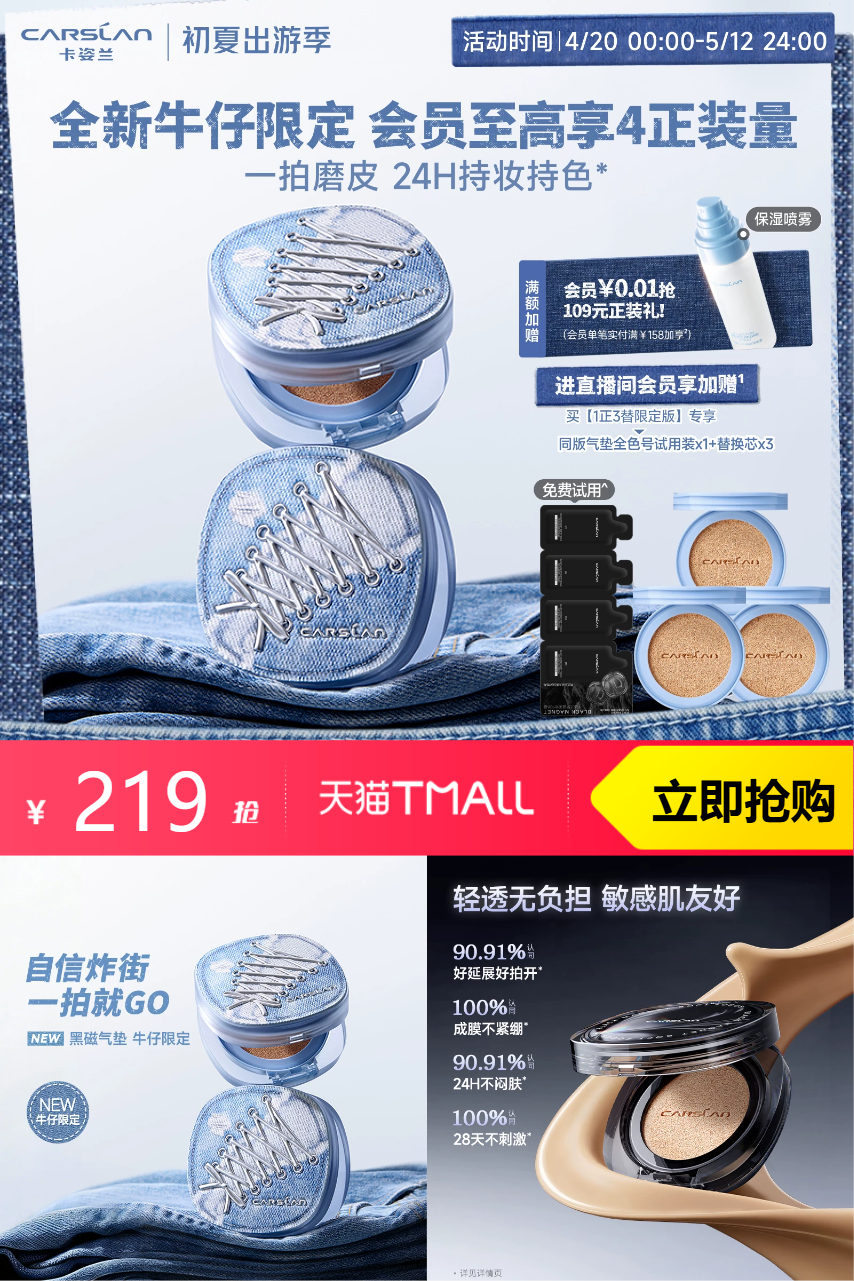 【拍2.0款1正2替!叠加淘金币2.99,店铺限时红包10元,到手206元,总共到手1正2替平均单支到手仅需68一个!】补妆也不卡粉,早八人通勤出游都能打~