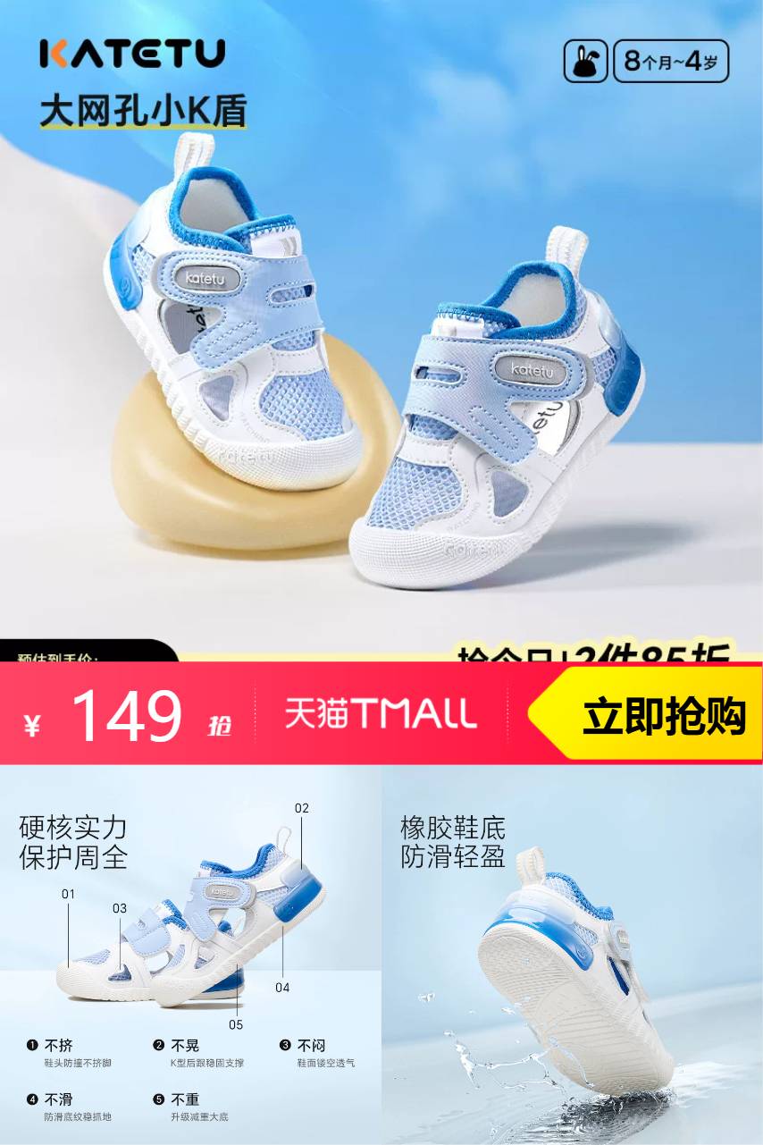 【补贴29.8到手119.2,可再叠淘金币10.19】卡特兔小k盾宝宝学步鞋夏季婴儿鞋包头凉鞋,夏天的学步鞋要求更高9要做好支撑要保护脚丫要透气又凉爽,说的就是这款。