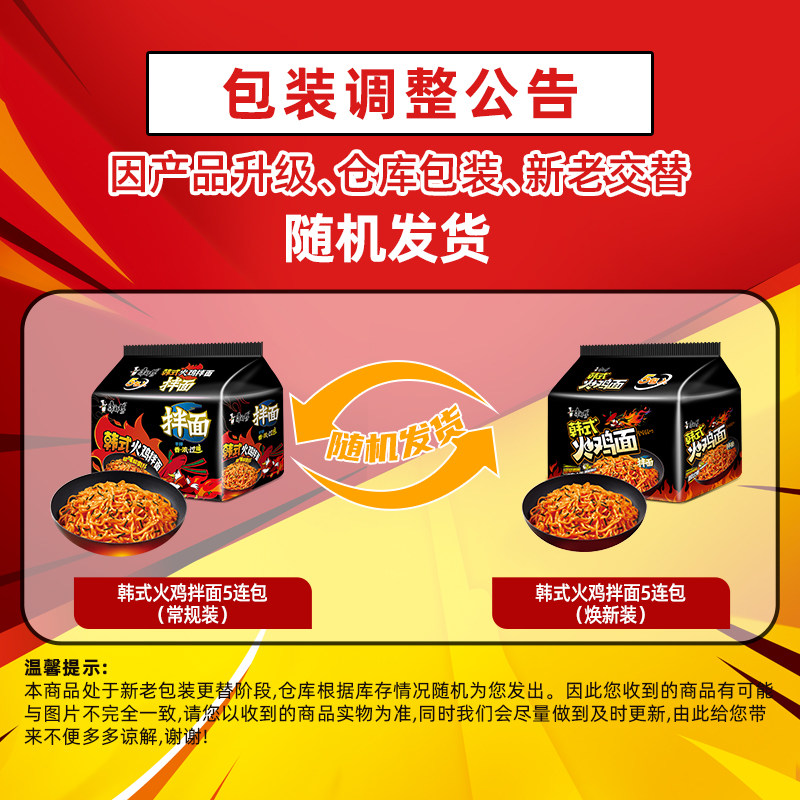 康师傅方便面韩式火鸡拌面118g*5包泡面速食