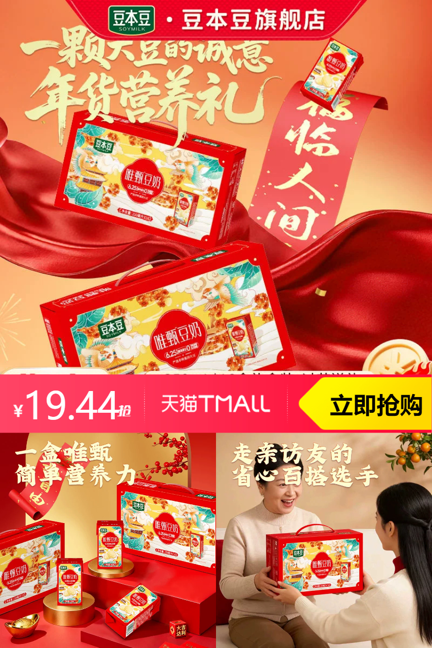 【原价39.64元-秒杀直降17.2元-首单3元=19.44元,tb首页秒杀频道秒杀直降17.2元,收到3-6元,到手16.44元-19.44元】豆本豆唯甄豆奶礼盒250ml*16盒植物蛋白饮料营养送礼整箱。