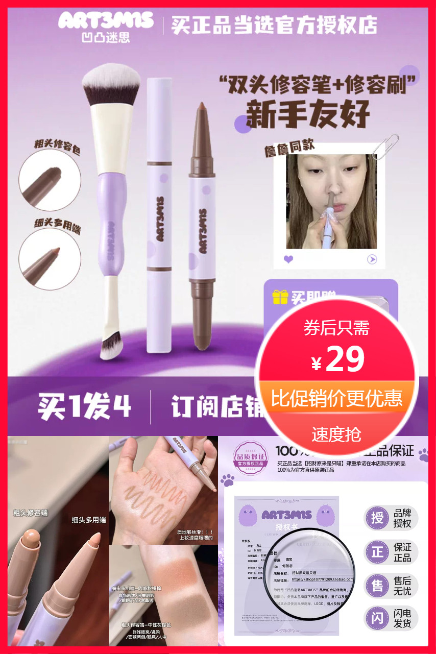 【可签到+超级立减6.9元+淘金币抵扣5.5元到手约22元+赠拇指粉朴*3】凹凸迷思双头修容笔,一头修容一头提亮,一抹立体小脸轻松get,手残党也能hold住,便携双头揣兜就走,秒变骨相美女,哑光质地,自然不假面,上妆快准狠,真的太值了!