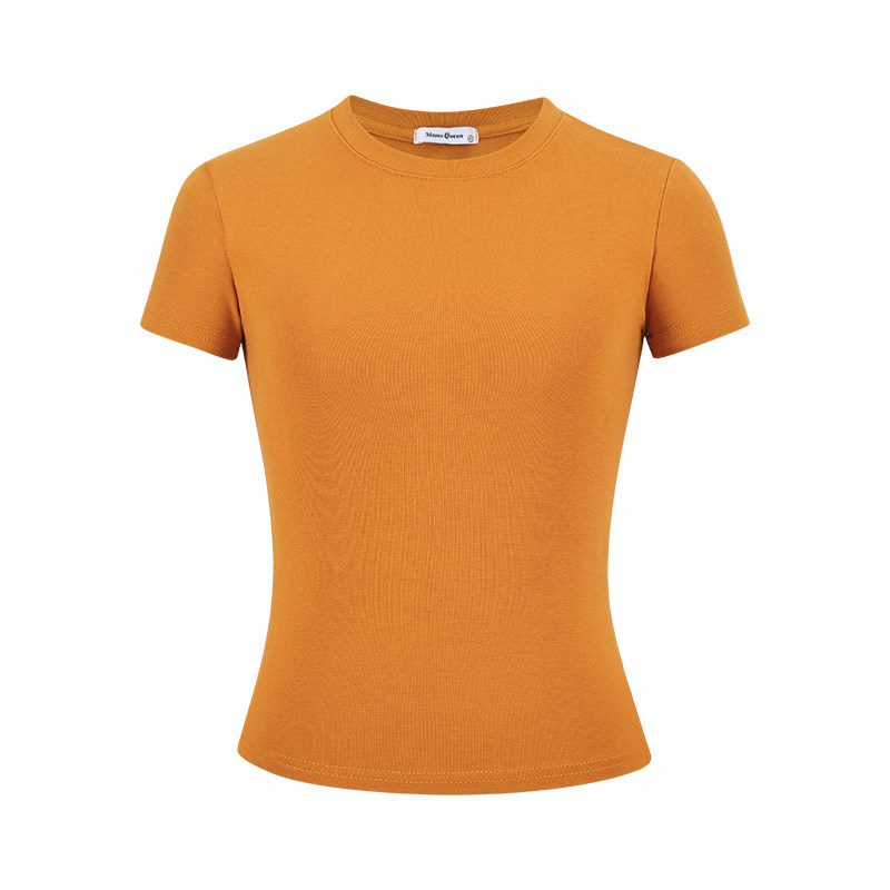 MosesQueen魔西女王白色正肩短袖t恤女夏季新款修身显瘦圆领上衣