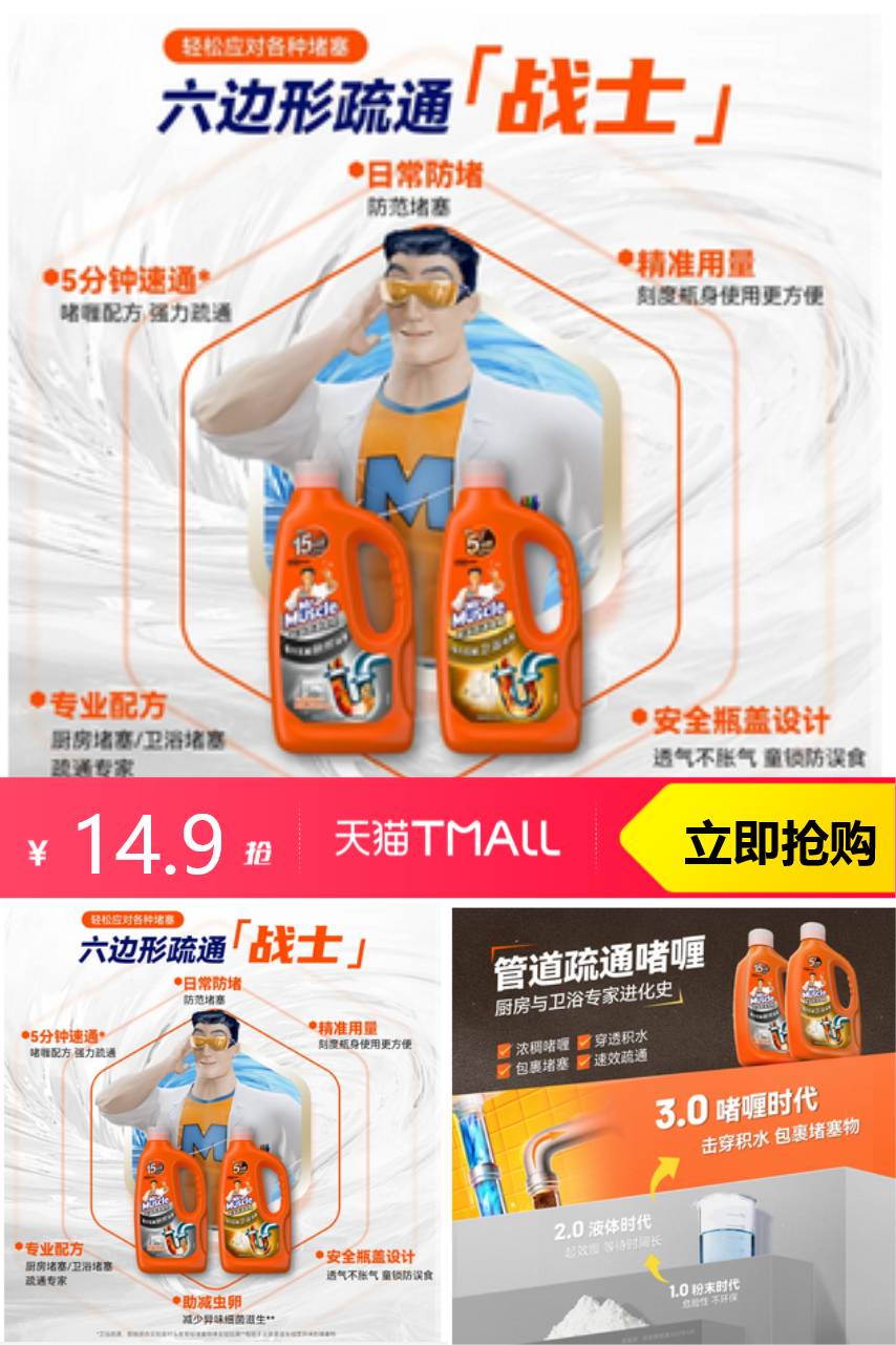 【淘金币抵扣4.48元,到手10.42元】对管道真的友好!不会腐蚀五金管道不管是PVC还是铸铁都能用,租房党也放心用!平时每月倒一点维护,再也不会堵得猝不及防