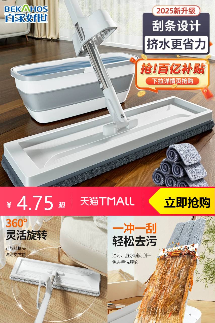 【原价19.9,优惠券19减10,福利直降红包0.15,省钱卡5元红包,到手价4.75】杆壁加厚,结实耐用,不易弯折!加宽加厚底板,吸水性好!强力吸水,干湿两用!
