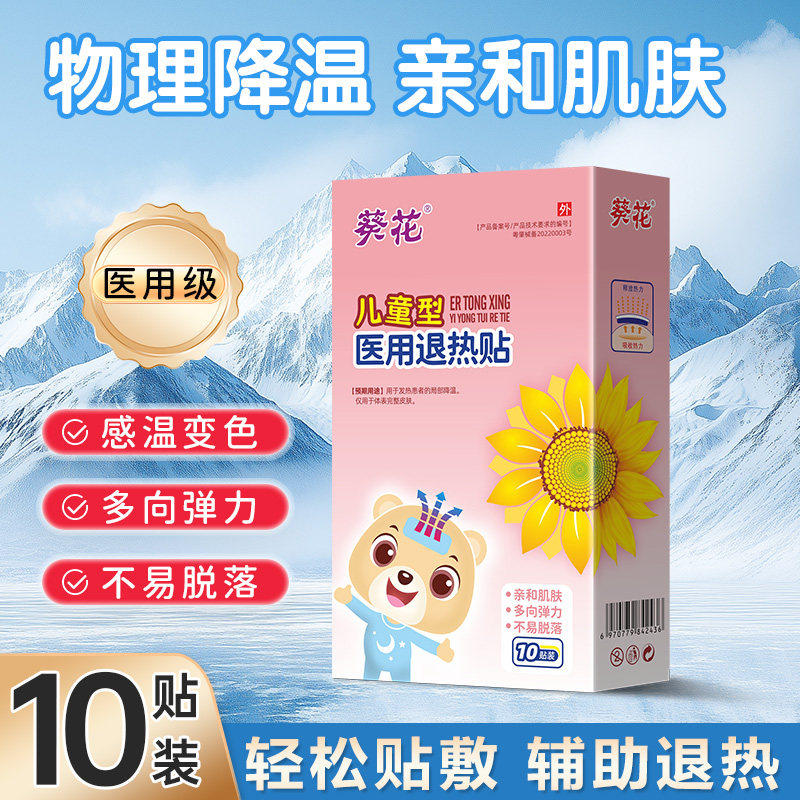 【葵花退热贴1盒10贴+送葵花儿童创可贴20片】葵花医用退热贴1盒10贴,仅需14.9元1盒~冬季难免感冒发烧,信赖葵花,0-16岁都适用!还有成人款哦!物理降温,感温变色更直观,添加进口冷感颗粒退热更快!