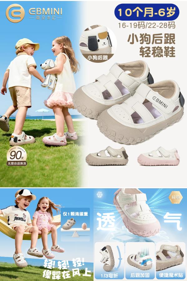 英贝米尼宝宝包头凉鞋,TPR防滑大底+透气网布+可调节魔术贴,学步稳、踩水轻、夏日不闷脚!168.9元入手2026夏季新款!轻便溯溪+运动学步二合一,高颜值实穿款限时特惠~给宝宝一双会呼吸的夏天小凉鞋,现在就安排!