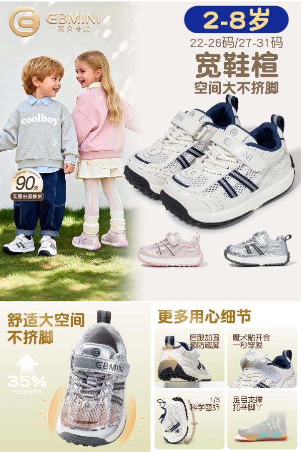 英贝米尼2026春款儿童运动鞋上市!网面透气+软底缓震,学步期到跑跳期全阶段舒适支撑~186.9元焕新价!同品质童鞋市场普遍280+,高颜值+真功能,性价比之选!小脚丫自由呼吸的春天,就从这双开始!