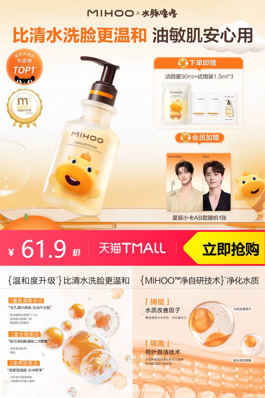 【下单即赠同款90ml+试用装1.5ml*3,抵扣0.97元淘金币,叠200-25消费券,到手53.32】油皮挚爱,洗卸2合一,可卸防晒,无添加,不假滑不紧绷,不适洁面一键KO,美修成分全绿,无任何添加!美女快下单囤起来