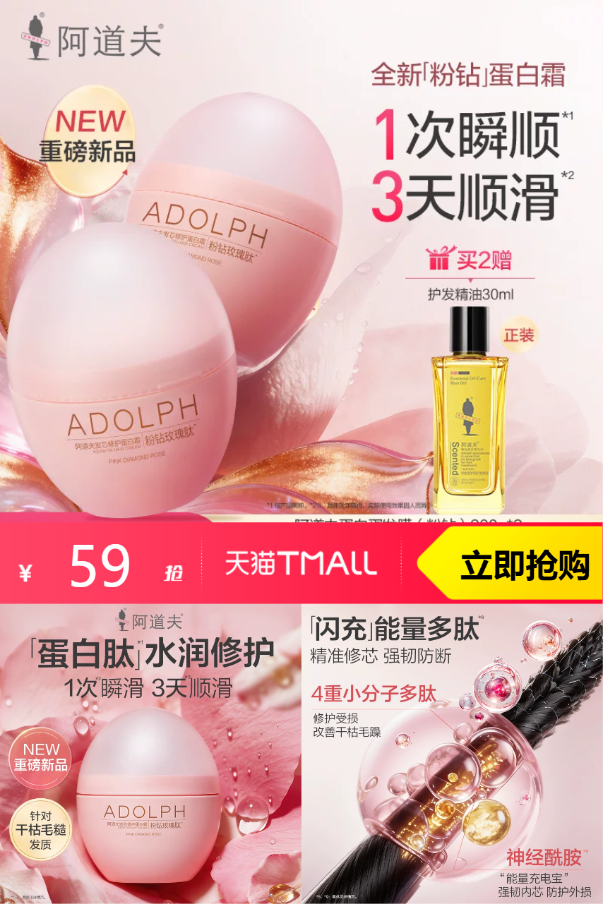 【原价119-立减20-淘客券40-88vip95折抵扣2.95-淘金币1.68=到手54.37元 还可叠200-25消费券到手更低】整个头发是那种透着光的顺,不是假滑!发尾的分叉都像喝饱了营养,炸毛的地方全服帖了!