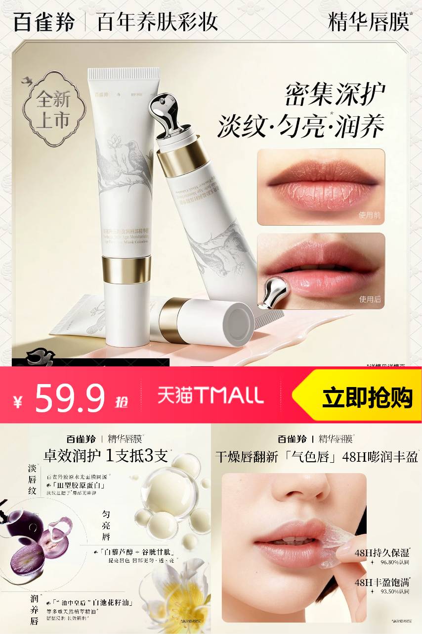 【原价74.9-超级立减15-淘金币1.49=到手58.41元】百雀羚精华唇膜透润款,深层保湿滋润,淡化唇纹,改善干裂与死皮,焕亮唇色。呵护双唇,柔嫩又水润!