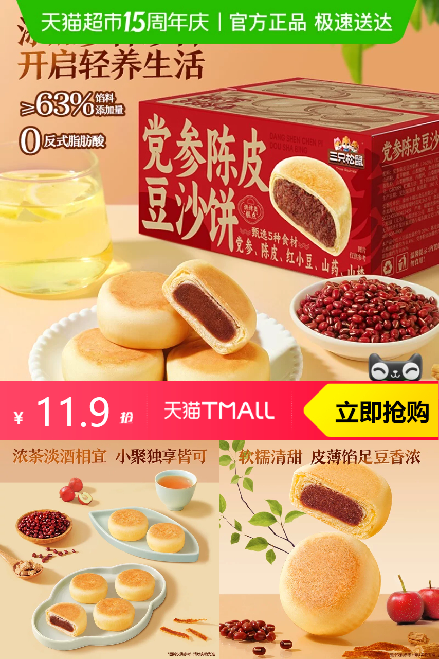 【秒杀直降3元+省钱卡9-5红包+88vip到手6.3】国风茶-党参陈皮豆沙饼~软糯细腻,陈皮清香微微甜~