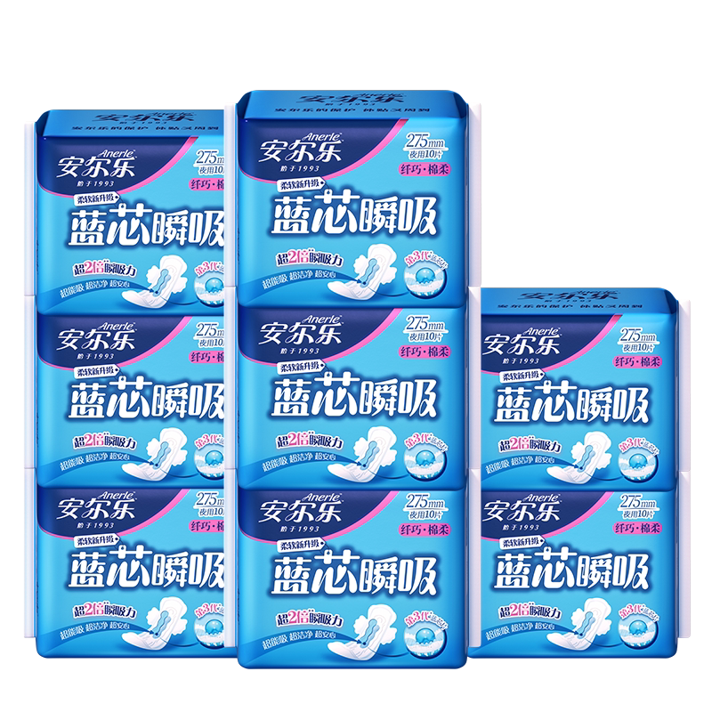 安尔乐卫生巾日夜用275mm蓝芯瞬吸棉柔透气正品国货少女姨妈巾ms
