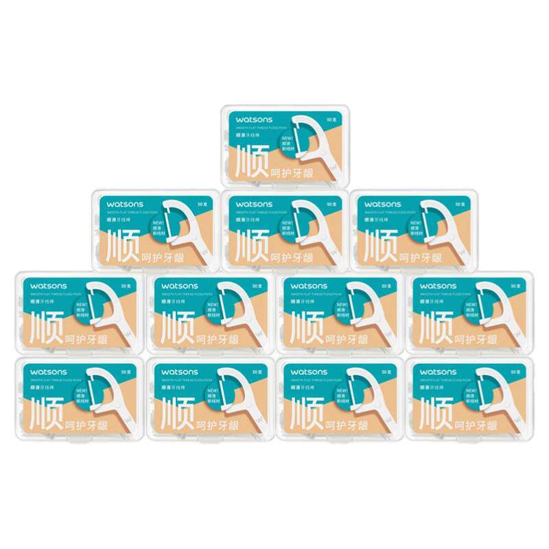 【前2000名加送1盒】屈臣氏扁线护理牙线棒,有效清除牙缝残渣,有效防止牙缝表面污渍形成,尾段弹性弯柄,可用作牙签,有助安全地清除牙缝间的实物残渣。