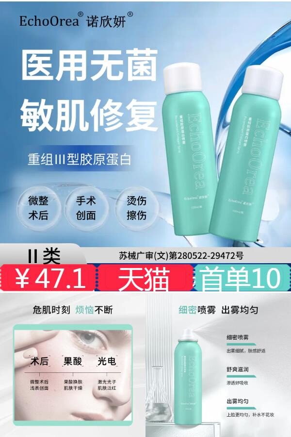 【赠敷贴】【官方立减11.9+店铺优惠40+首单10元+淘金币+消费券,到手低至约15元/瓶】重组胶原蛋白喷雾100ml/瓶,价格美丽,现在不买,涨价被宰~