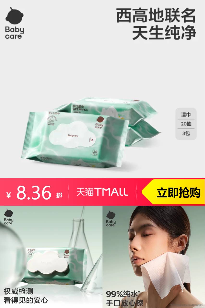 【叠加88立减0.5+淘金币1.04到手8.36元,3包便携装五一出游提前备】券后:下拉详情至淘金币频道,直到挖到babycare这款西高地纯水湿巾20抽3包组!简直是出行刚需天花板.