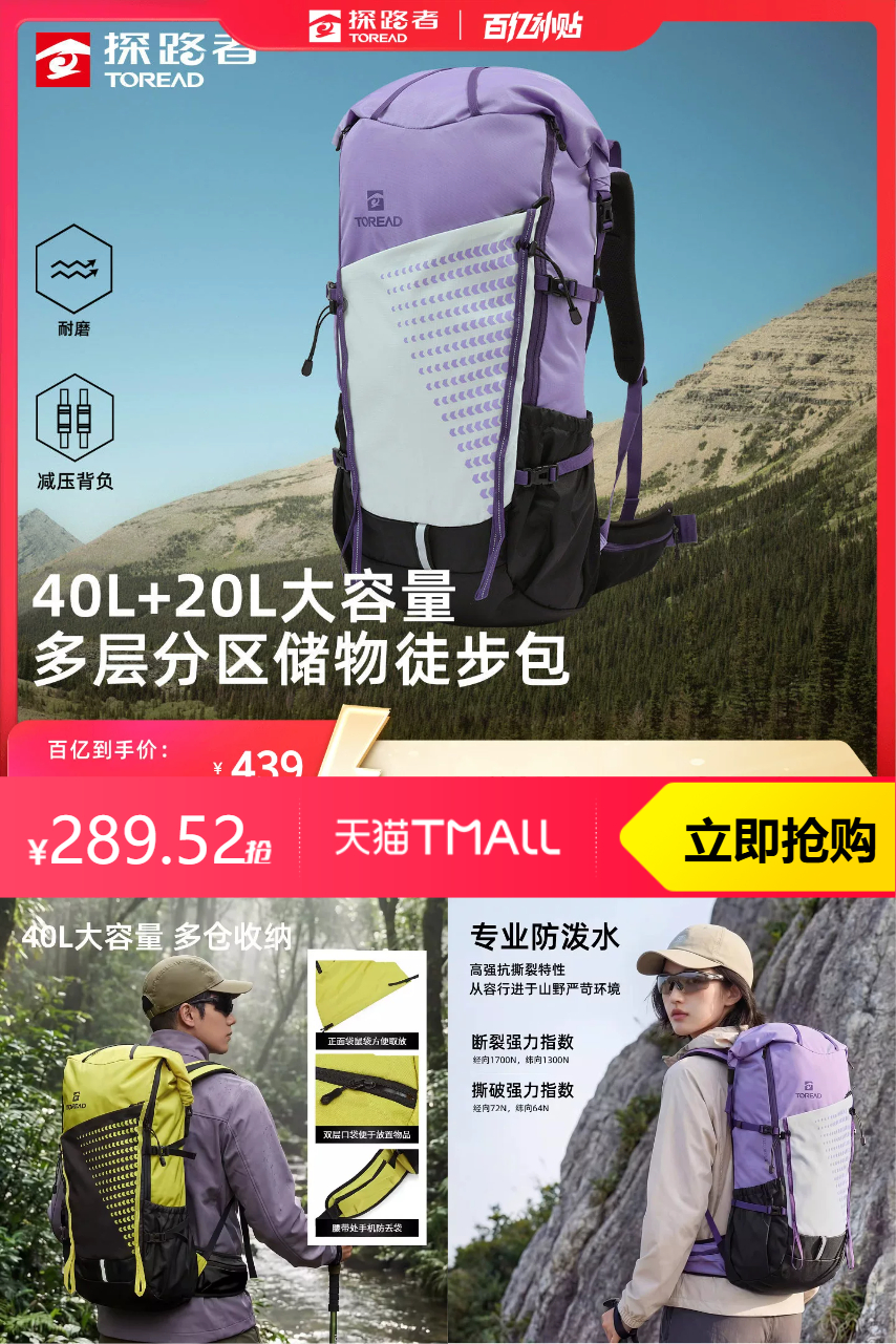 【原价439-限时补贴149.48-淘金币8.78=到手价280.74元】轻量减负透气不闷,蜂窝立体微循环系统柔软支撑有效减轻背负压力!