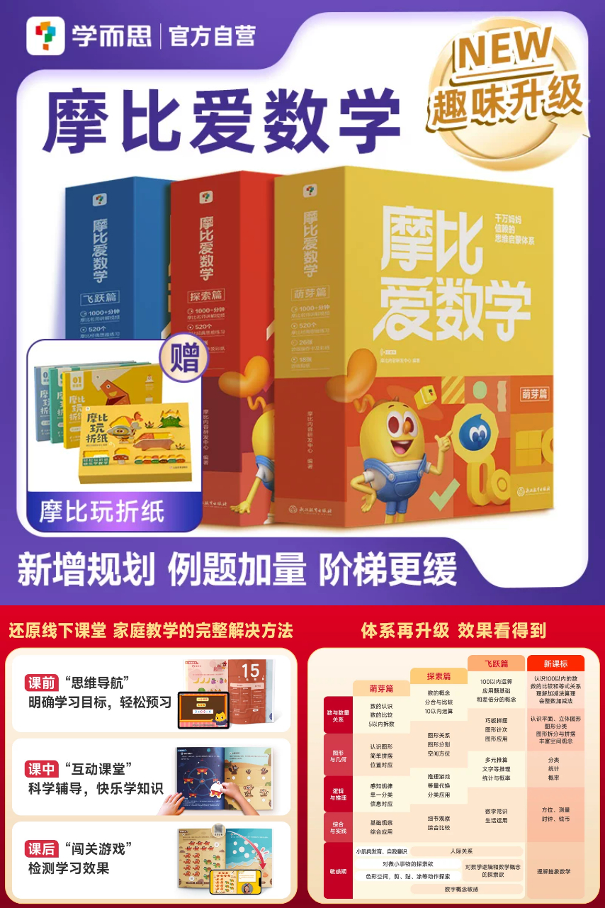 学而思摩比爱数学!300多万妈妈信赖的数学早教启蒙网红书,萌芽篇1-18本全套,适用于3-6岁年纪(幼儿园小班)数与运算+几何与空间+逻辑与推理,提升思维力和收获数学知识的能力~!