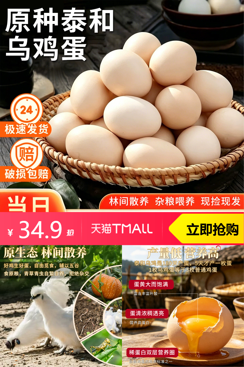 【原价58-立减7-限时立减11.1-优惠券5-淘金币6.4-首单礼金6=到手价22.5,可以叠加食品加补券到手19快左右】好鸡生好蛋,自由觅食,辅以五谷食原粮,青草青虫自繁自养,拒绝杂交~