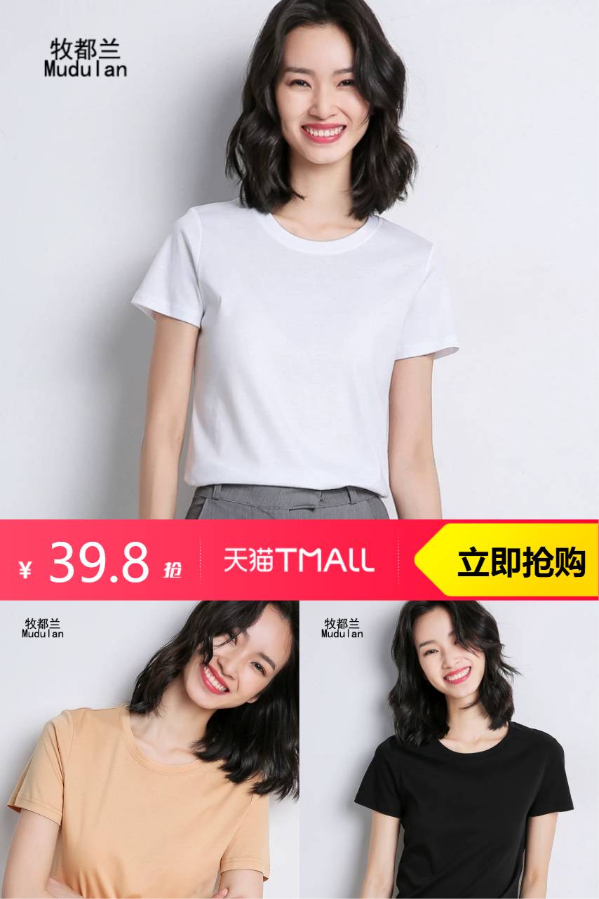 【拍2,原价79.8-淘客券40-金币0.79=39.01】牧都兰纯棉T恤女新款,优质纯棉透气舒适,修身显瘦设计,轻松打造休闲时尚造型!