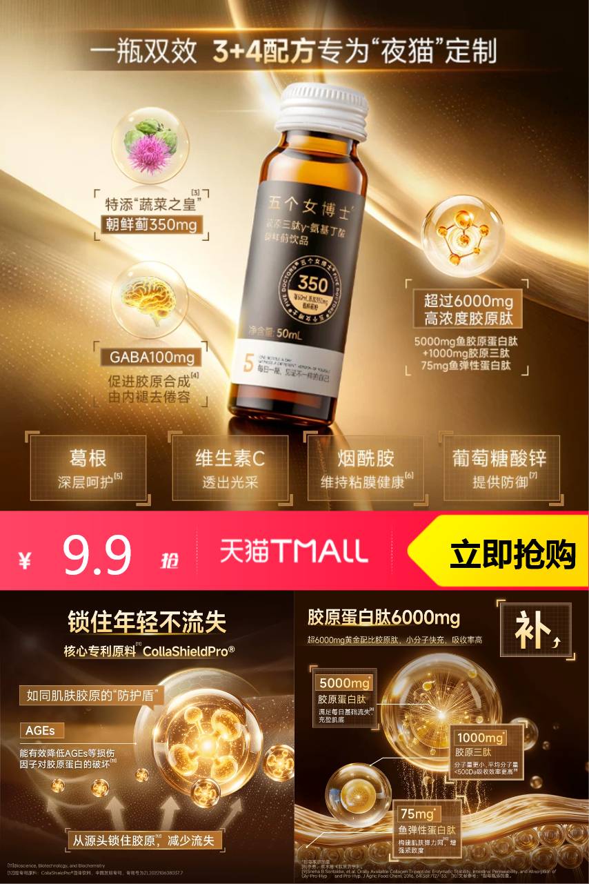 3支五个女博士鱼胶原蛋白肽饮口服液,胶原蛋白肽6000mg,6000mg黄金配比胶原肽,小分子快充,吸收率高~