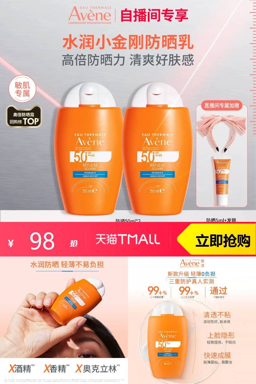 【官方立减30元,淘金币抵扣4元,到手94元】户外暴晒也稳如泰山!雅漾水润小金刚防晒乳SPF50+硬核抵御全波段紫外线