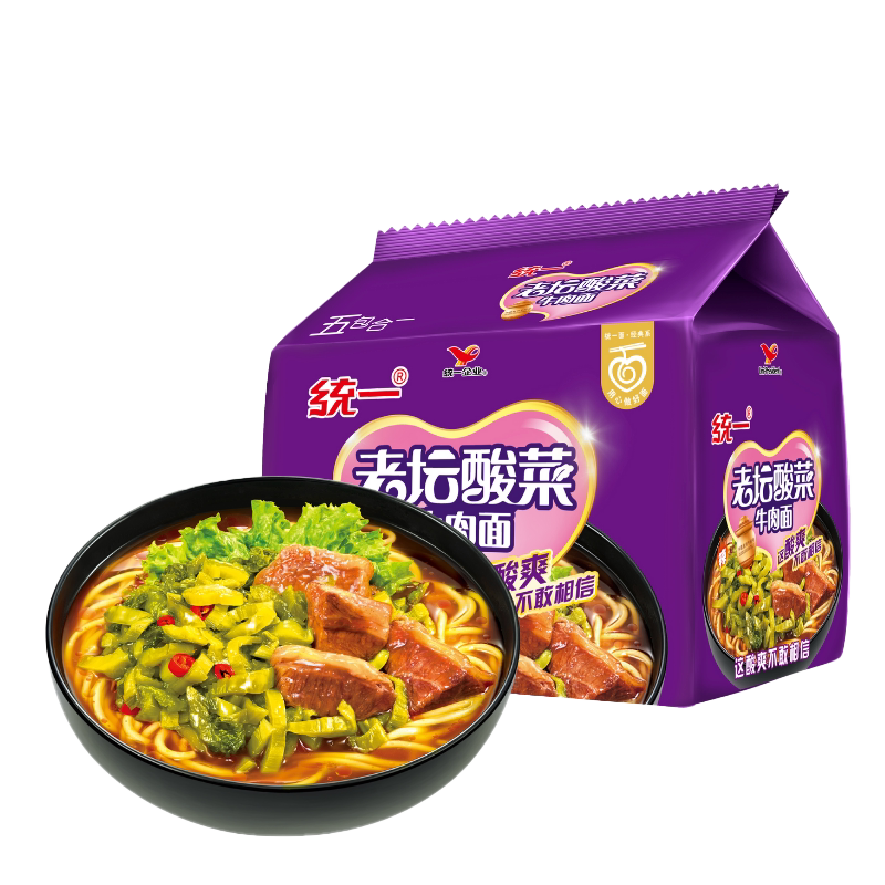 统一100老坛酸菜牛肉面方便面泡面121g*10袋经典泡面