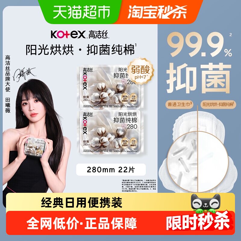 【下拉领金币补贴】高洁丝卫生巾阳光烘烘抑菌纯棉280*22p