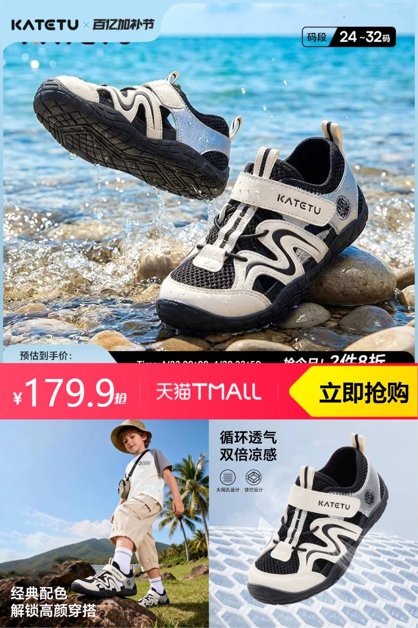 【88消费券22.5+补贴金额35.98,最终到手价121.4】卡特兔儿童户外溯溪鞋,2026夏季新款,男女童都能穿!防滑耐磨、透气清爽,玩水散步两不误,假一赔四正品保障,夏日遛娃必备,舒适又耐穿~