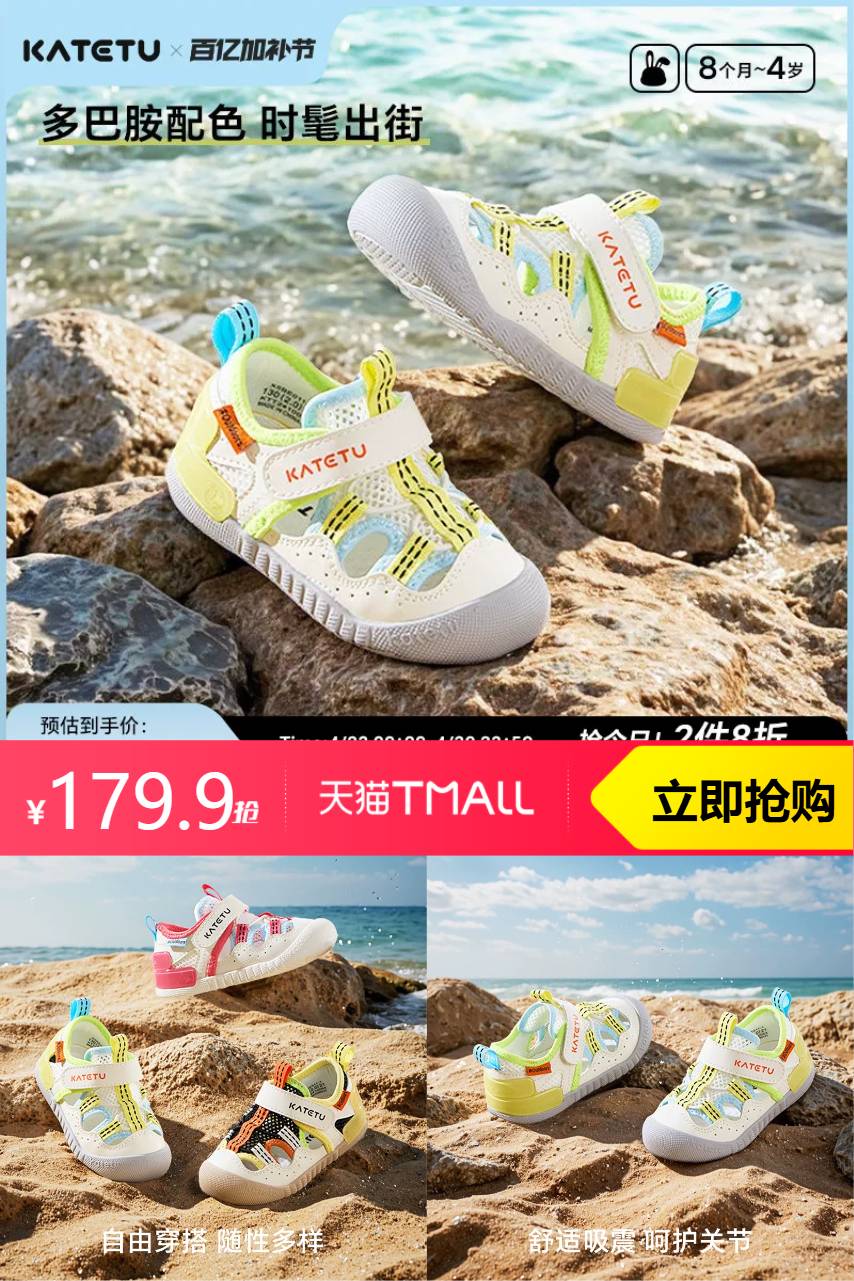 【88消费券22.5+补贴金额35.98,最终到手价121.4】卡特兔小K盾学步鞋,透气凉爽适合夏季,男女童皆宜!淘金币可叠加使用,宝宝学步更舒适,轻便防滑设计,呵护每一步!