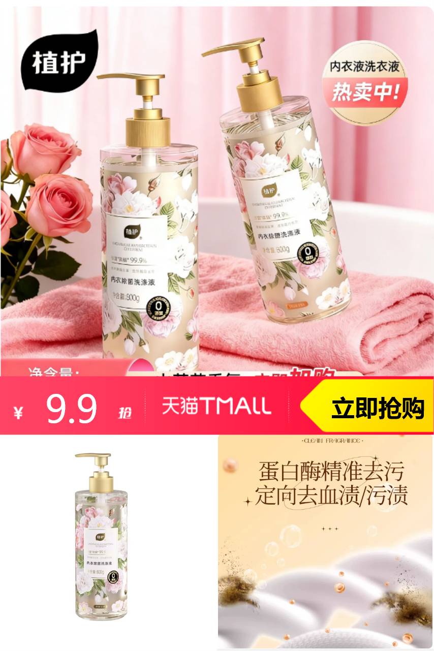 【原价22.9元-立减3元-限时优惠10元=9.9元 天降活动补贴2元=7.9元】专门针对内衣裤污渍设计,不管是姨妈血渍、日常黄渍还是分泌物残留都能轻松瓦解。而且是弱酸性配方,贴近私处肌肤PH值,孕妈、敏肌姐妹也能放心用