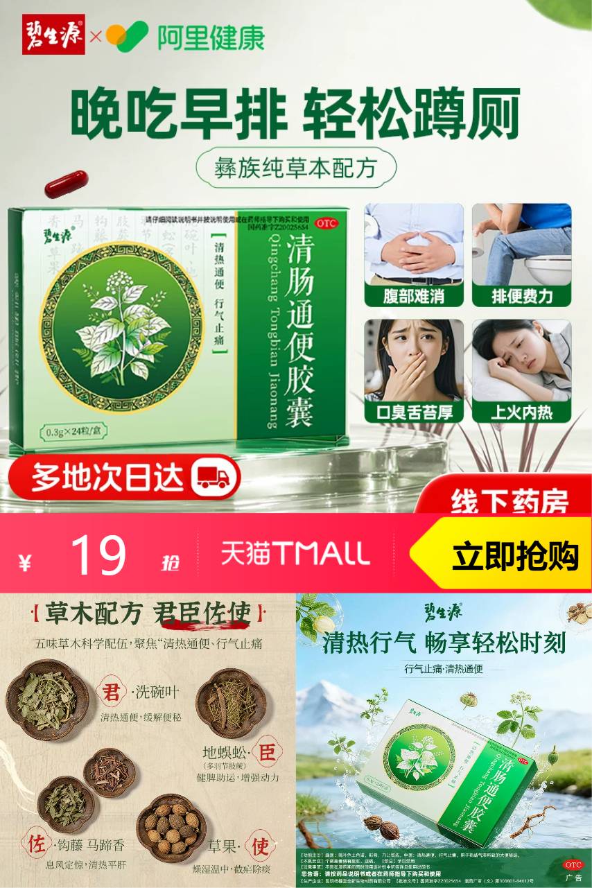 推荐:【秒杀低价!】碧生源清肠通便胶囊药12粒