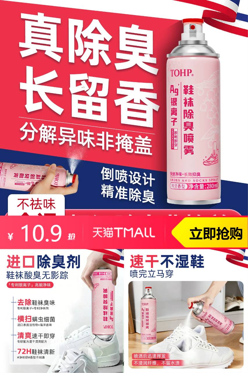 【原价47,立减10.1,淘客券26。到手10.9,淘金币抵扣4.23,到手6.6左右。】轻轻一喷,异味快速消散,2瓶够用好一阵,鞋柜、单鞋都能喷~